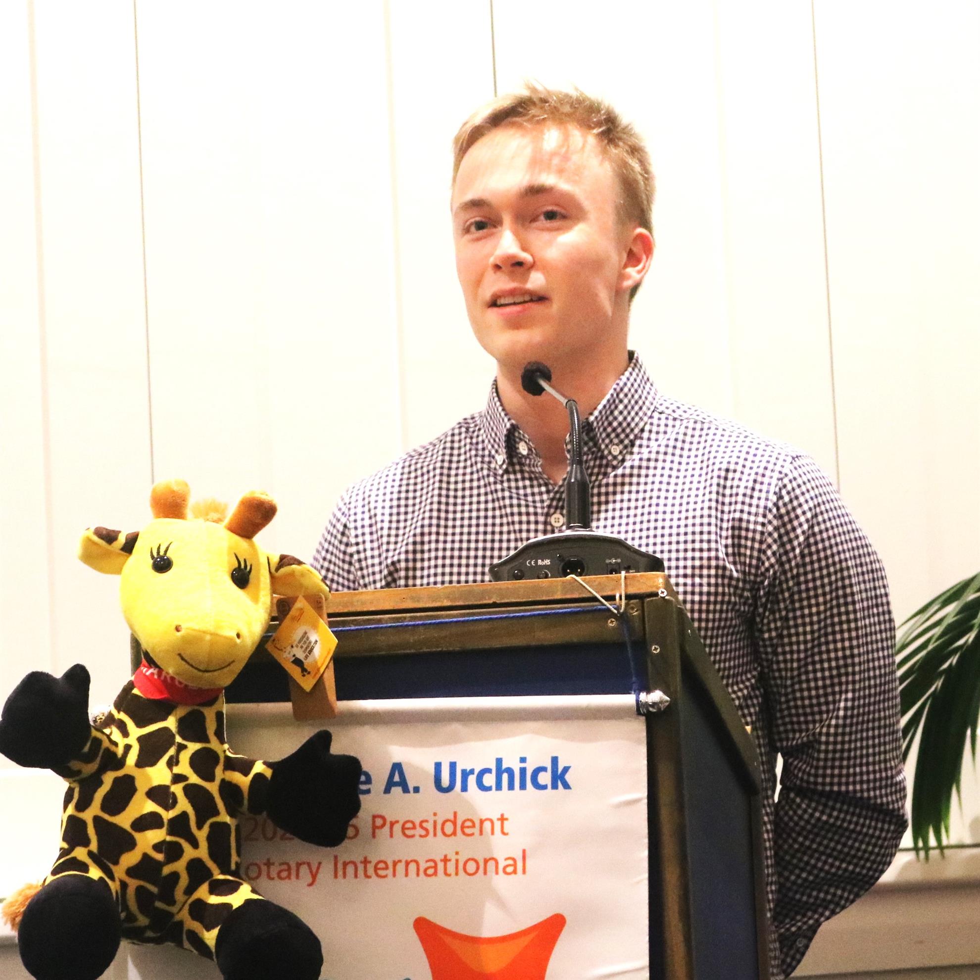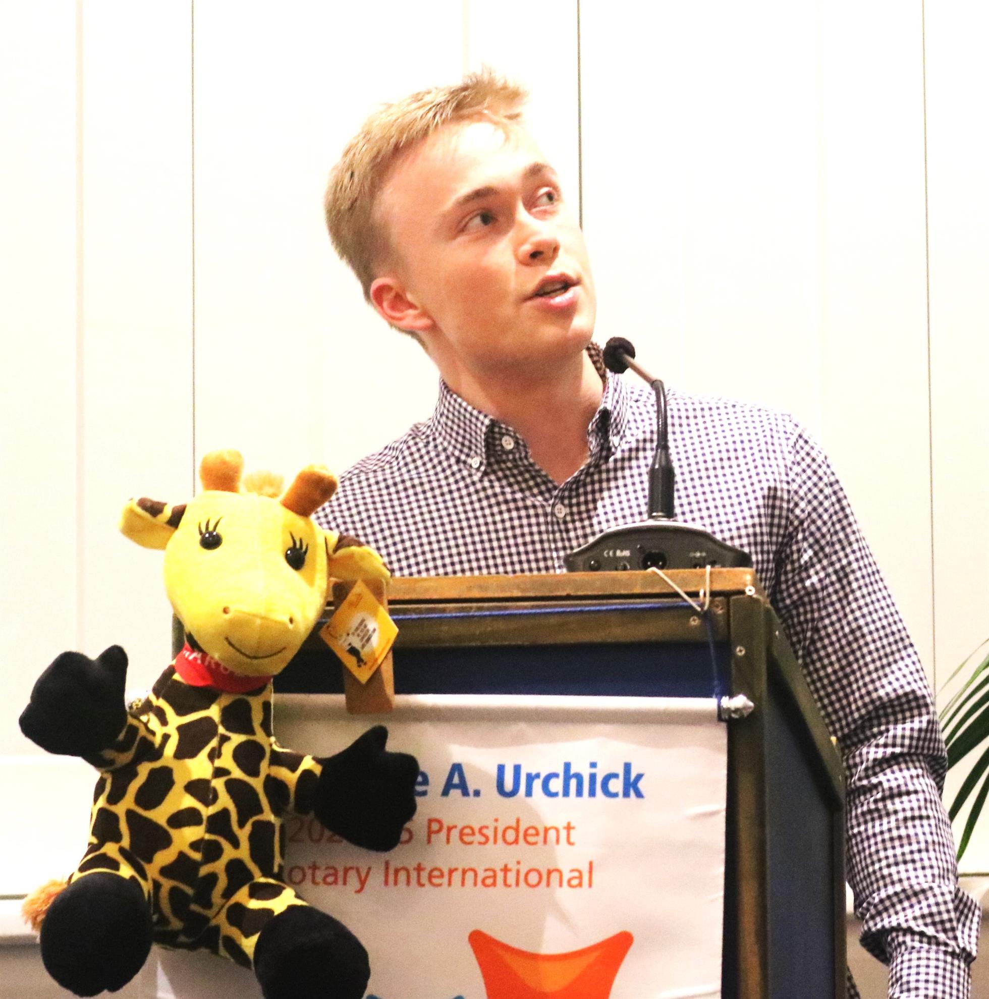 Madeleine introduced Ethan McCormick who is no stranger to our club. He is a past winner of the Brian Hanlon Speech contest and the inaugral winner of the Rotary Club of Howick Environment award at Howick College. He has also been very involved at Mangemangeroa establishing a pest eradication programme.